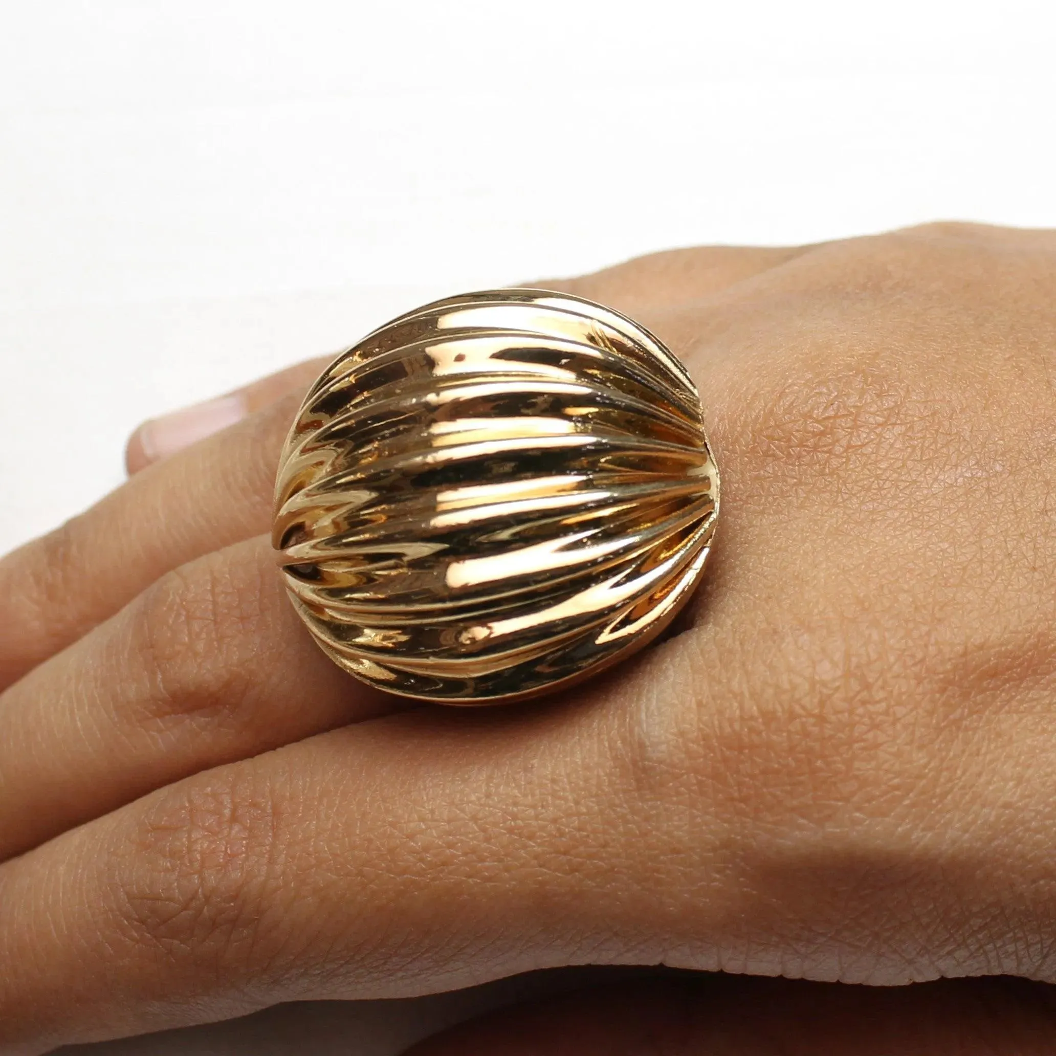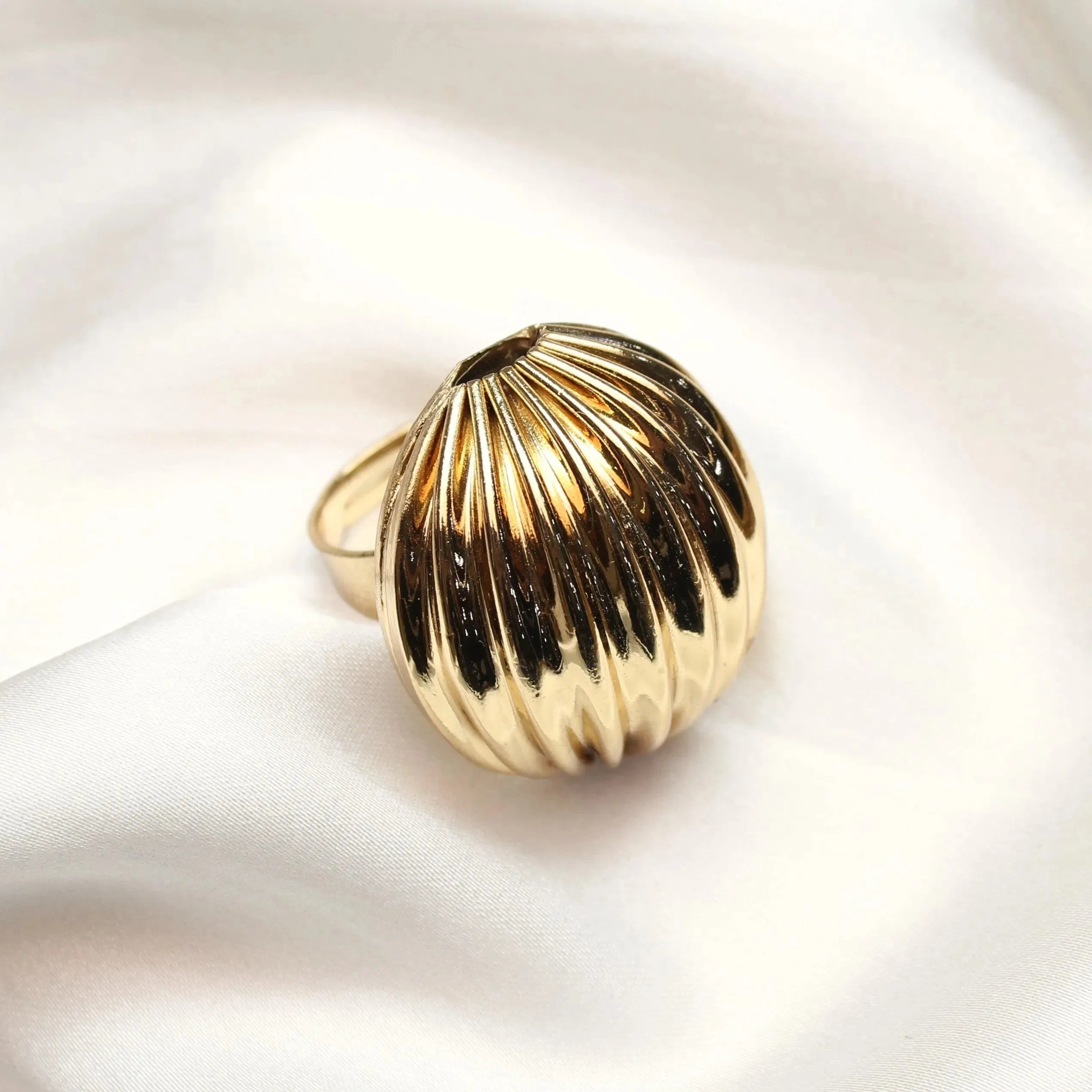 Illuminate your evening fashion with the TFC 24K Big Vortex Gold Plated Adjustable Ring. Stylish and trendy, this statement piece captivates with its swirling design, embodying elegance and modern charm. Crafted for those who embrace sophistication, its adjustable fit ensures comfort and versatility, making it the perfect accessory for any occasion. Add a touch of glamour and shine to your look with this exquisite ring.